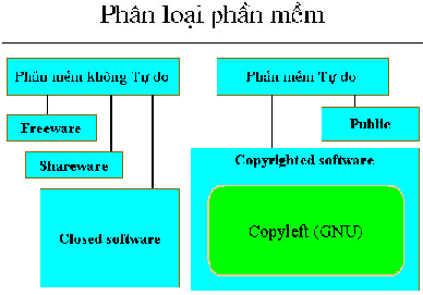 Trong các phần mềm Tự do lại được chia làm hai loại: phần mềm Không Ðăng ký Bản quyền (not copyrighted) và phần mềm Có Ðăng ký Bản quyền (copyrighted).